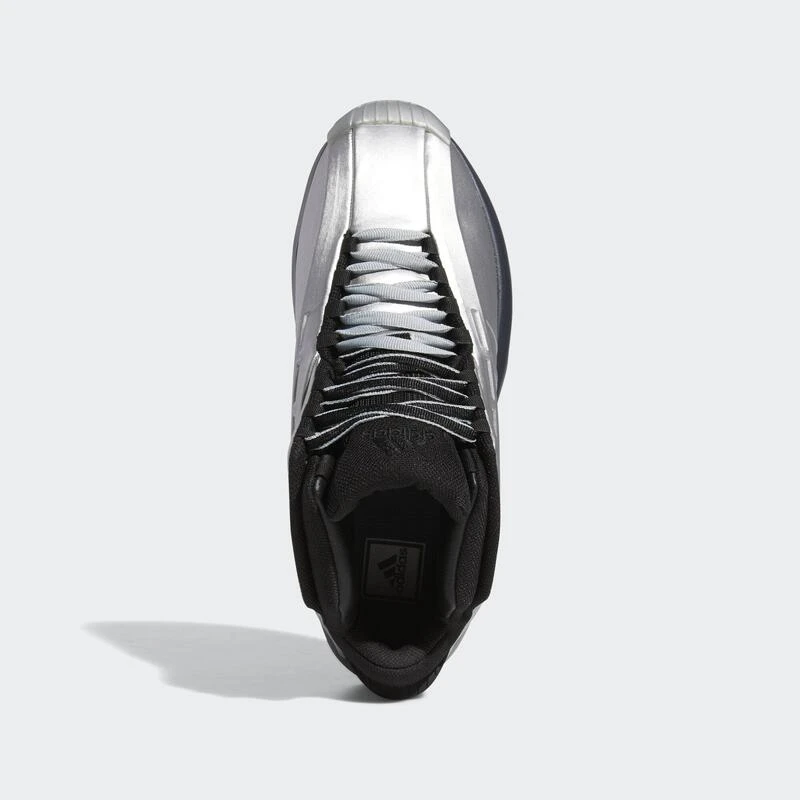 Une chaussure signature adidas Basketball, conçue en partie à base de matières recyclées.