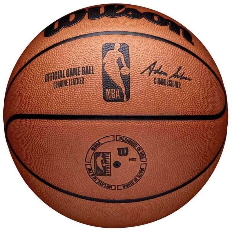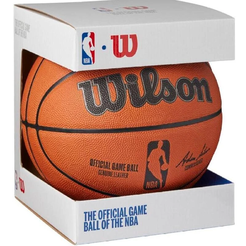 Le ballon de jeu Wilson Official NBA est fabriqué avec du cuir véritable. Ballon Officiel de la NBA.