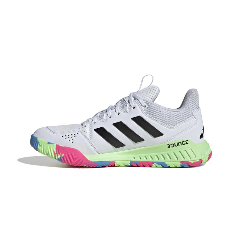 Des chaussures indoor adidas pour femme avec une empeigne en maille souple et une tige durable contenant au moins 50 % de matériaux recyclés. Avec amorti Bounce pour plus de confort sur toutes les …