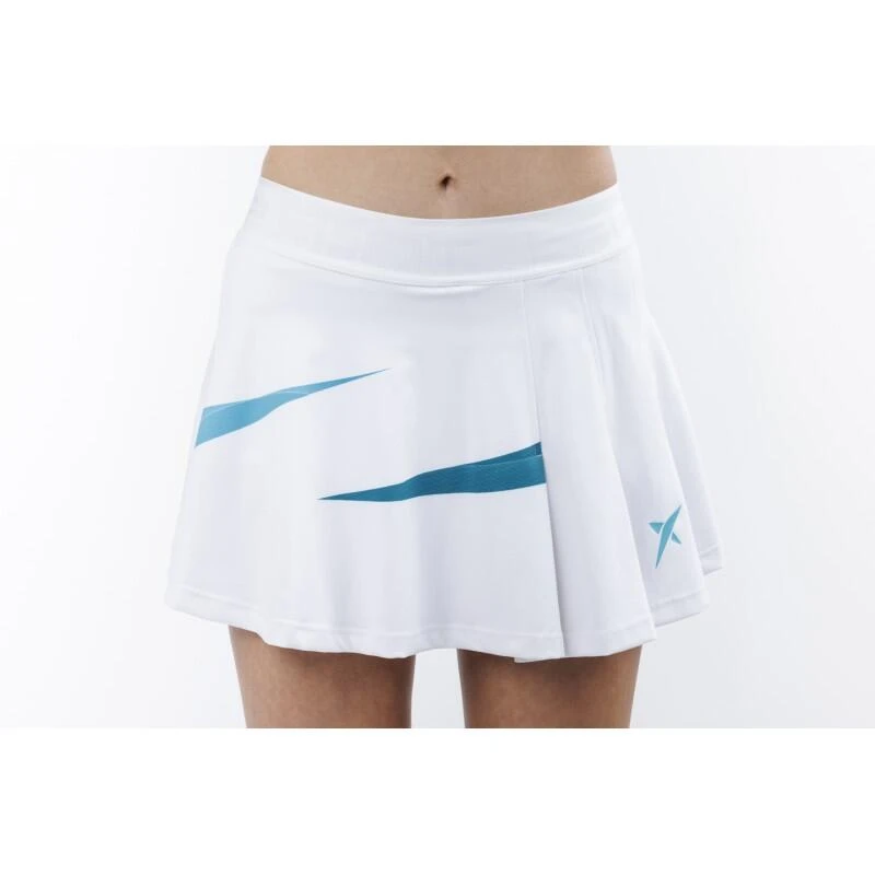 La jupe de padel Drop Shot Sibi pour femme se distingue par son confort sur le court et son design élégant dans les tons blancs et bleus avec des tables d’un côté