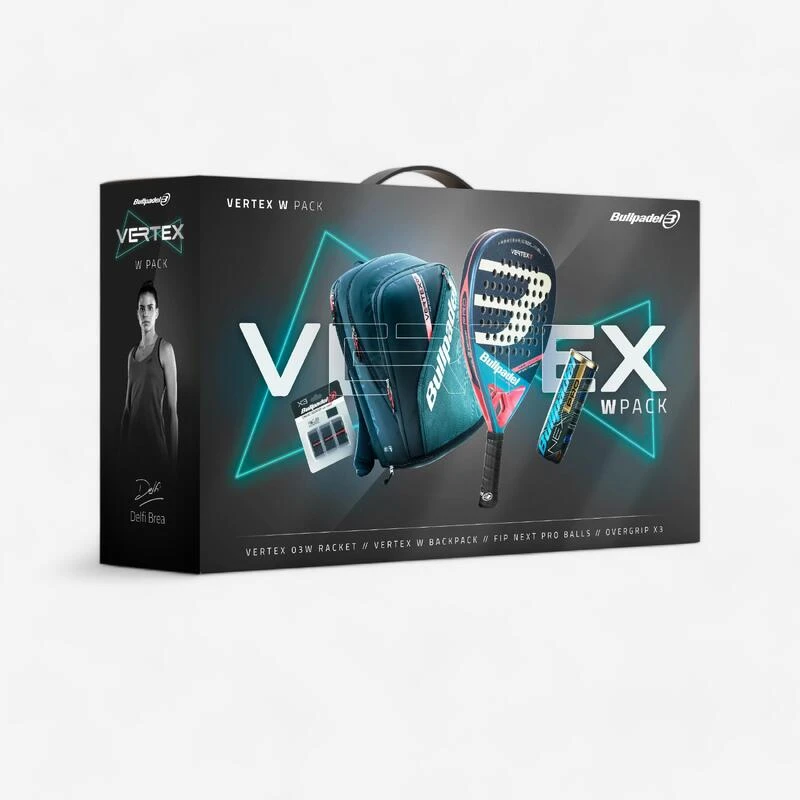 Profitez de ce pack Bullpadel Vertex 03 W pour équiper les joueuses les plus exigeants, le cadeau idéal pour ce Noël !Ce pack est composé de la raquette Vertex 03 W (Proline), du sac à dos Vertex bleu (Proline), d’un lot de balles Bullpadel Next et d’un lot de 3 surgrips noirs. Livré dans une boîte spécifique.