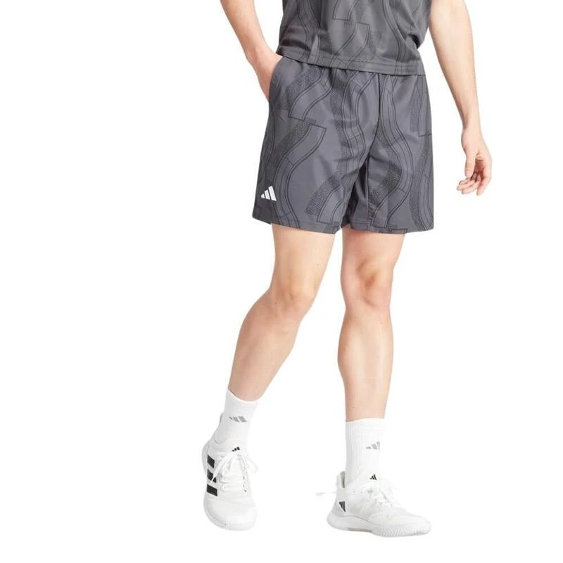Le short adidas Club Graph, conçu en matières recyclées, évacue la transpiration et arbore un imprimé stylé pour un look unique sur le court de tennis.