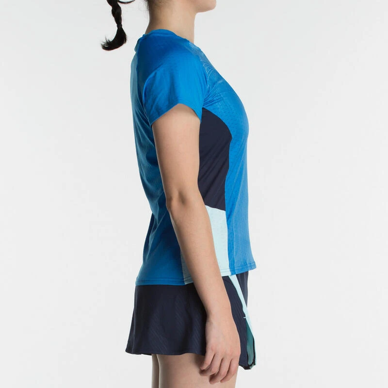 les joueuses régulières de badminton avec un niveau intermédiaire.T-shirt d’un excellent rapport qualité-prix conçu pour le badminton, confortable, léger, évacuant l’humidité et offrant une bonne liberté de mouvement. Disponible pour homme dans le même style.